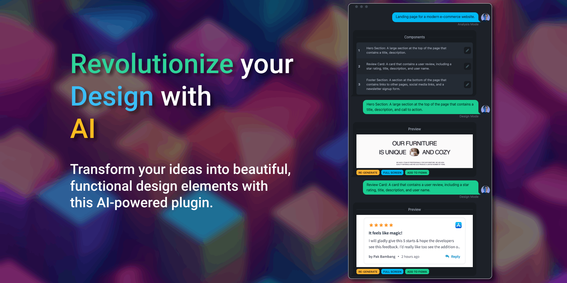 Introducing Text to Design, a groundbreaking Figma plugin that combines the power of artificial intelligence to transform your text descriptions into stunning, functional design elements and images. With Text to Design, creating navigation bars, hero sections, product cards, or generating images from mere text descriptions is not just expedited but made more intuitive than ever before.